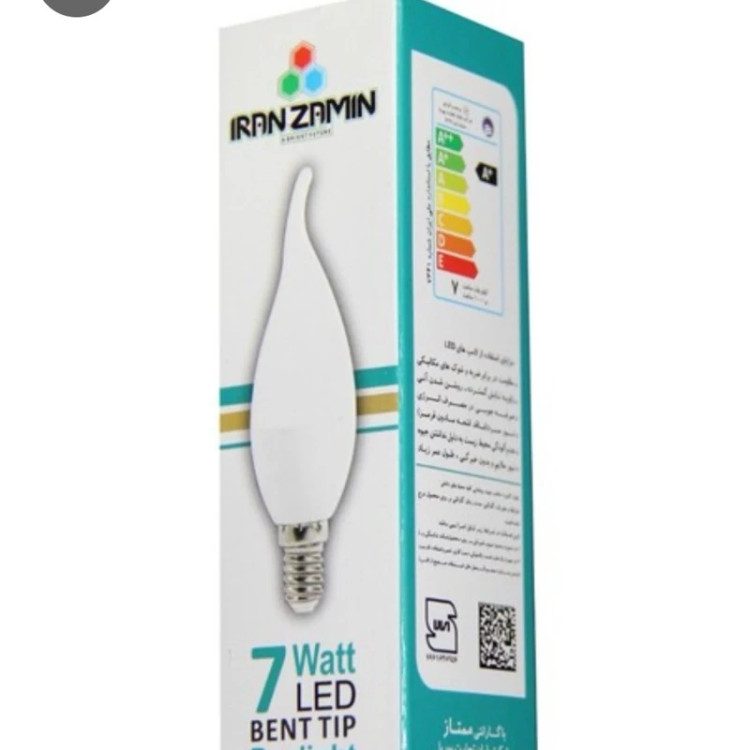 لامپ شمعی 7 وات برند ایران زمین سفید و آفتابی با گارانتی، مناسب برای لوستر