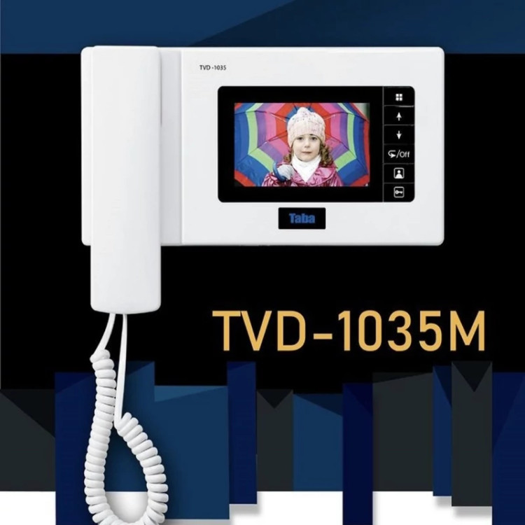 آیفون تصویری مدل 1035 تابا 4/3 اینچ میباشد.دارای حافظه داخلی که تا 200 تا عکس ذخیره میکند.قیمت درج شده شامل یک عدد پنل دم درب، مانیتور ،منبع تغذیه و قفل پشت درب می باشد.